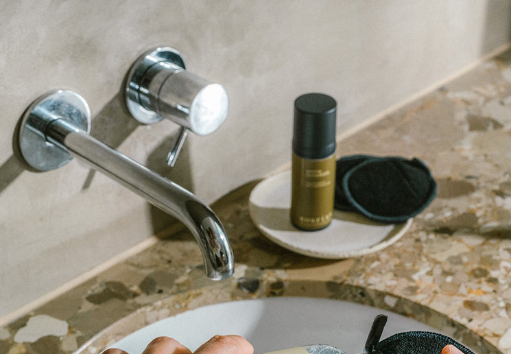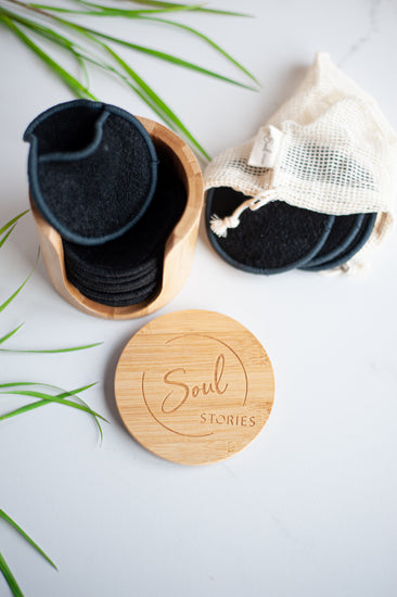 This set includes our micellar water + reusable cotton pads in a beautiful bamboo holder.